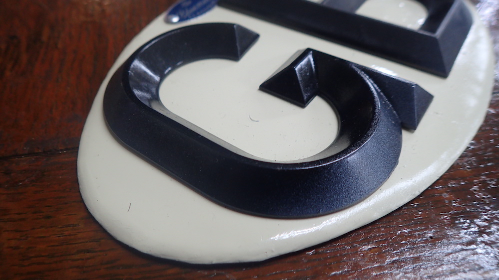 当時物のBluemelsのナンバーを型で取り拵えた「G」文字とオリジナルの「B」を組み合わせ作りました。 Bluemelsのタグは英国製です。 英国でもレアな立体文字のGBプレートです。 手作り感満載ですが雰囲気をご理解してた頂ける方はお楽しみ下さい。