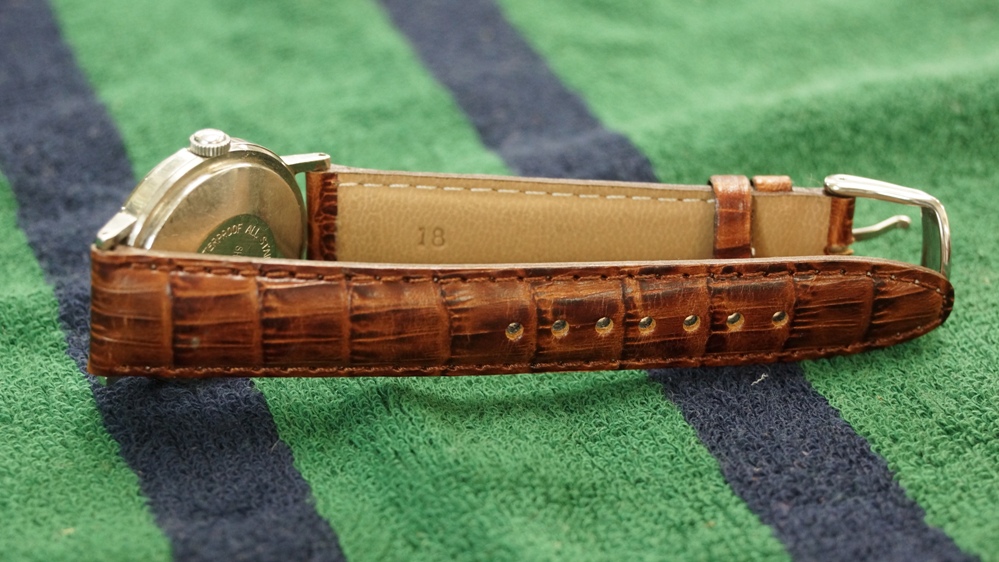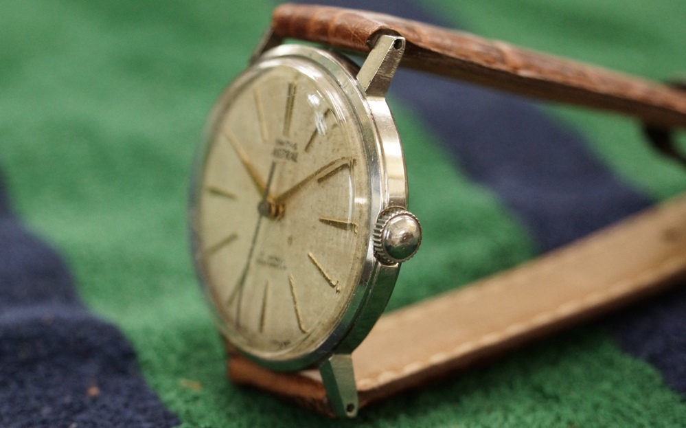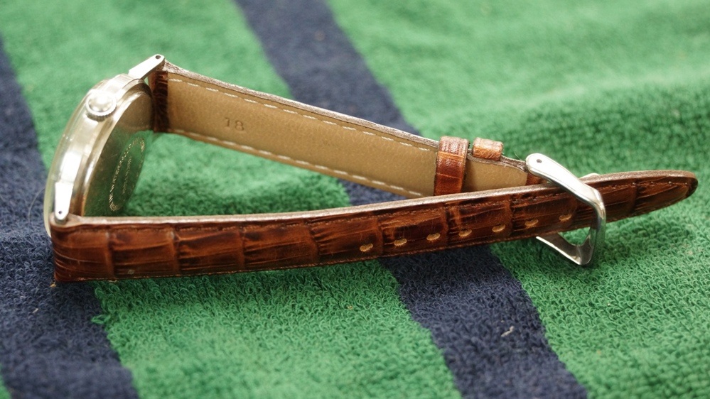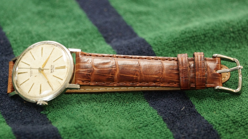 ベルトとも相まって琥珀色の如何にも英国的な落ち着いた時計だと思います。